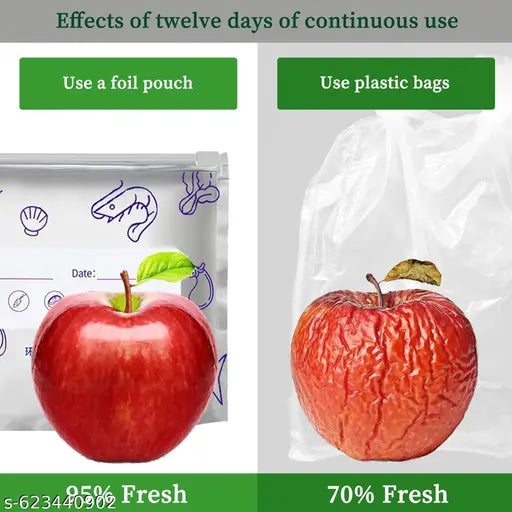 Each bag features a high-quality zipper lock that creates an airtight seal. This helps prevent contamination, odor transfer, and exposure to humidity—keeping fruits, vegetables, snacks, spices, and even meat fresher for longer.